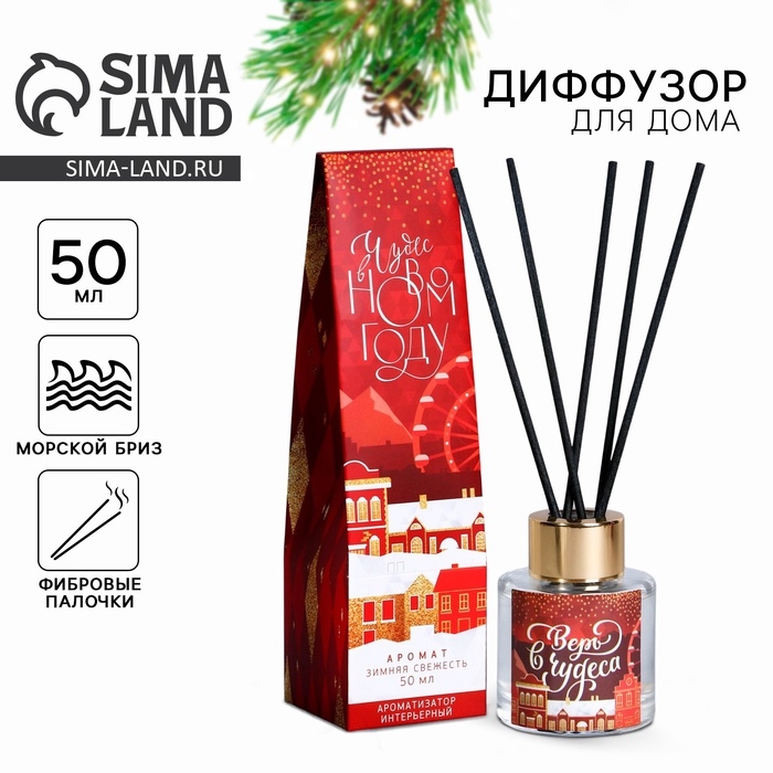 Диффузор ароматический палочки «Новогодняя коллекция: Верь в чудеса», на Новый год, аромат морского бриза, 50 мл. - для дома, кабинета и офиса. Ароматные палочки и диффузоры являются современным модным элементом интерьера. Ароматический диффузор создаёт комфорт и притягательную ауру в помещении.