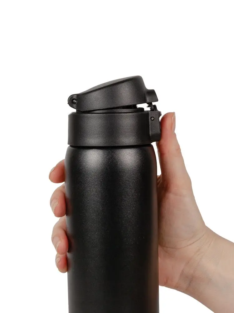 Термокружку легко открыть одной рукой — особенно удобно в машине или на улице. Дополнительный фиксатор на крышке предотвратит случайное проливание напитка.