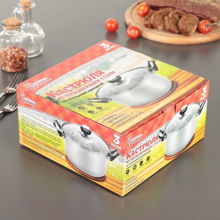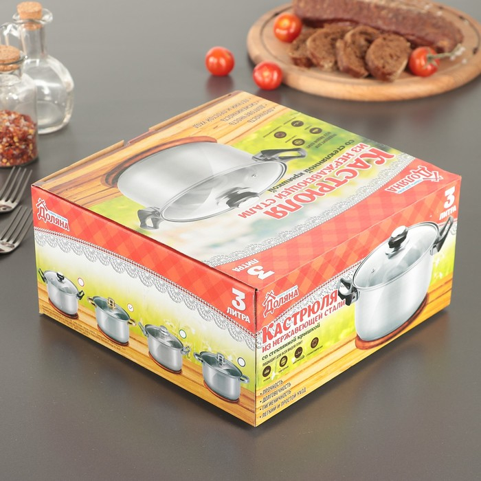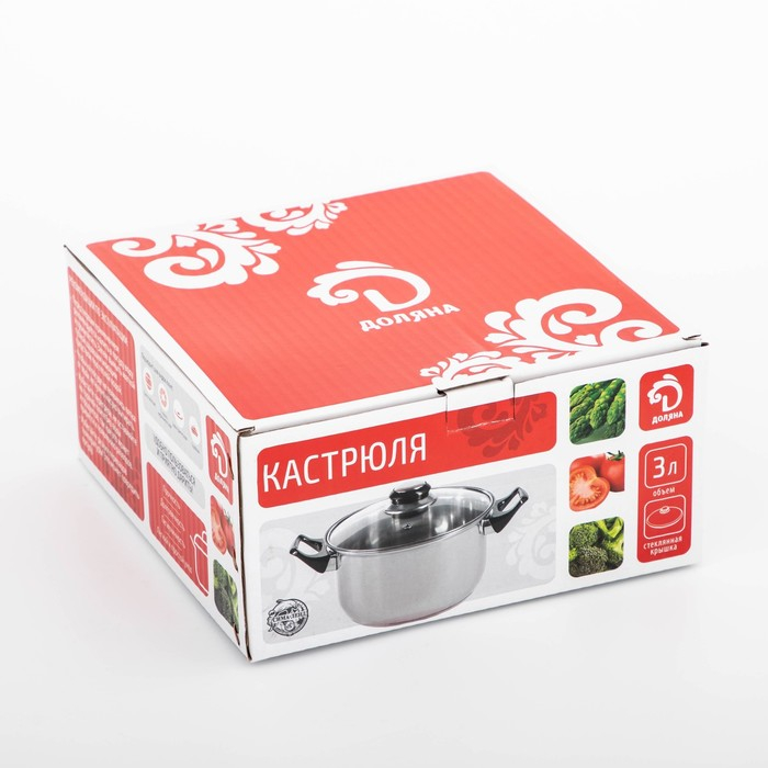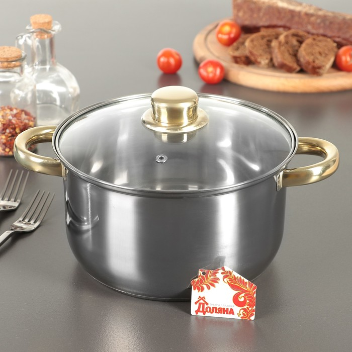 Кастрюля из нержавеющей стали с крышкой Доляна «Роскошь», 3 л, d=20 см