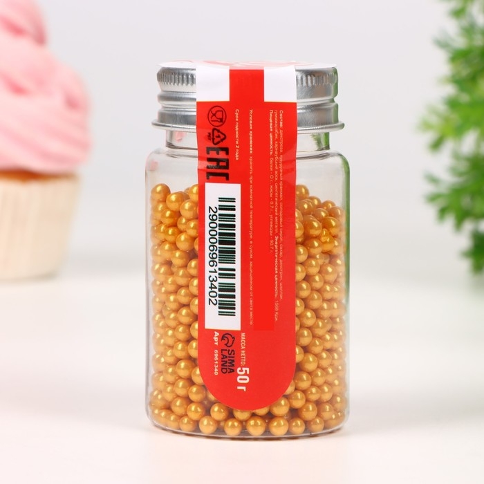 Кондитерская посыпка «Шарики №3», золотая, 50 г