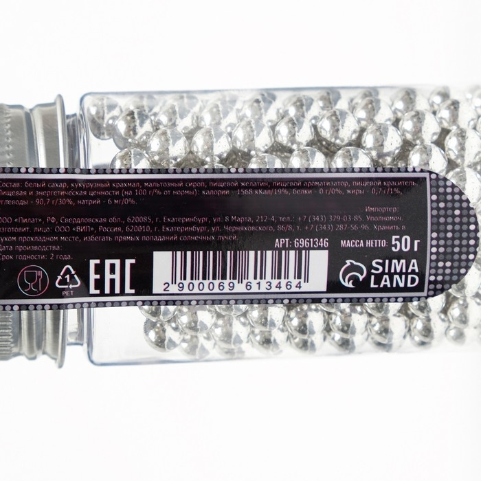Кондитерская посыпка «Шарики №2», серебристая, 50 г