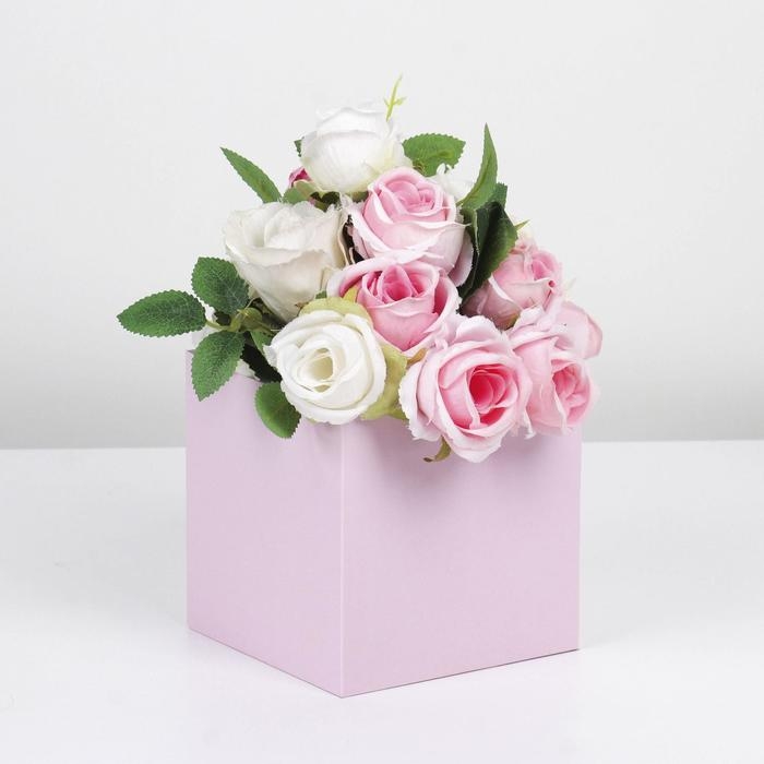 Коробка для цветов с PVC крышкой, розовая, упаковка подарочная, 12 х 12 х 12 см