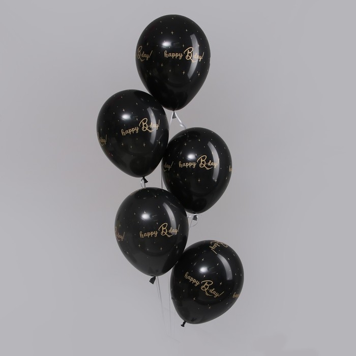 Воздушный шар латексный 12" HBD, пастель, цвет чёрный, 15 шт.
