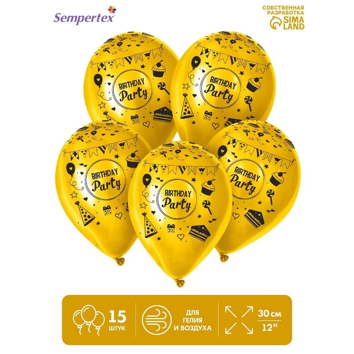 Воздушный шар латексный 12" «Весёлая вечеринка», пастель, цвет жёлтый, 15 шт.