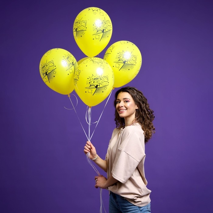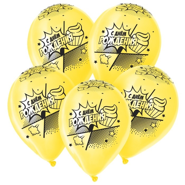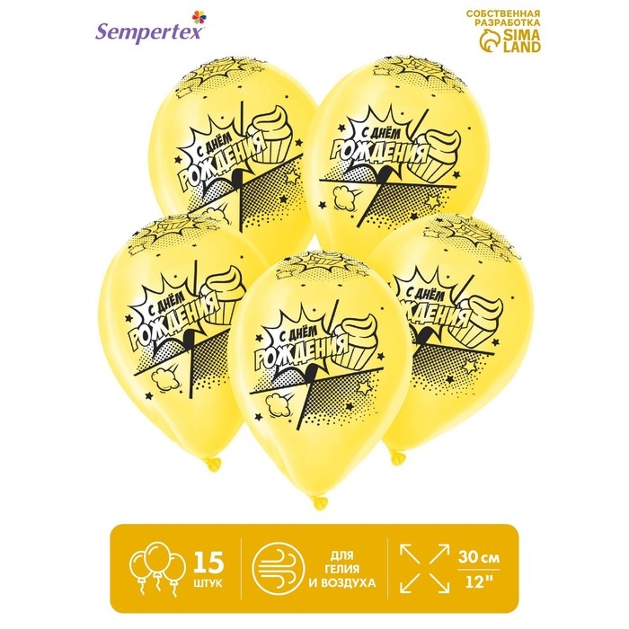 Воздушный шар латексный 12" «С Днём Рождения. Комикс 2», пастель, цвет жёлтый, 15 шт.