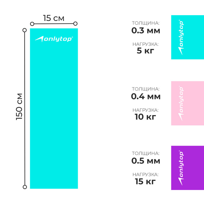 Набор эспандеров ленточных ONLYTOP: нагрузка 5, 10, 15 кг, 3 шт., 150х15 см, цвета МИКС