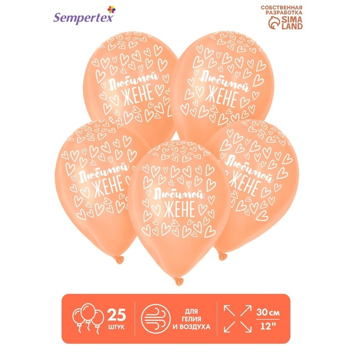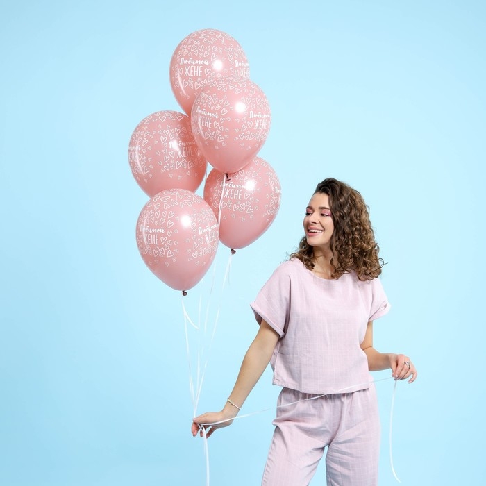 Воздушный шар латексный 12" «Любимой жене», пастель, цвет розовый, 25 шт.