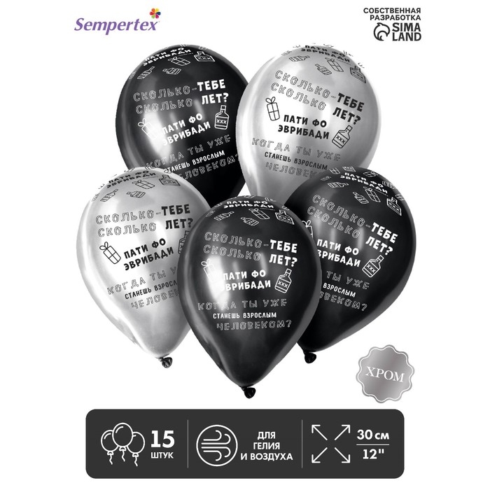 Воздушный шар латексный 12" «Когда ты станешь взрослым», хром, 15 шт., МИКС