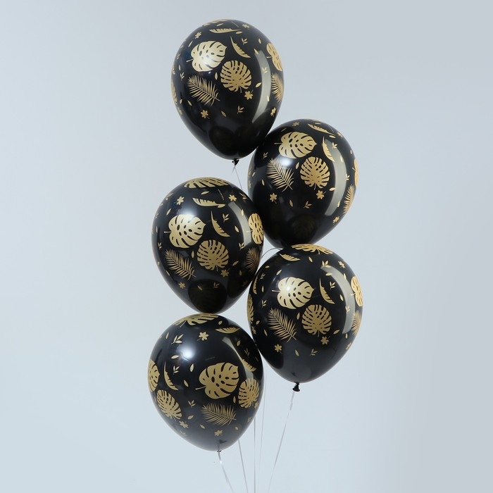Воздушный шар латексный 12" «Листья», пастель, цвет чёрный, 15 шт.