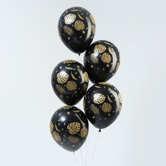 Воздушный шар латексный 12" «Листья», пастель, цвет чёрный, 25 шт.