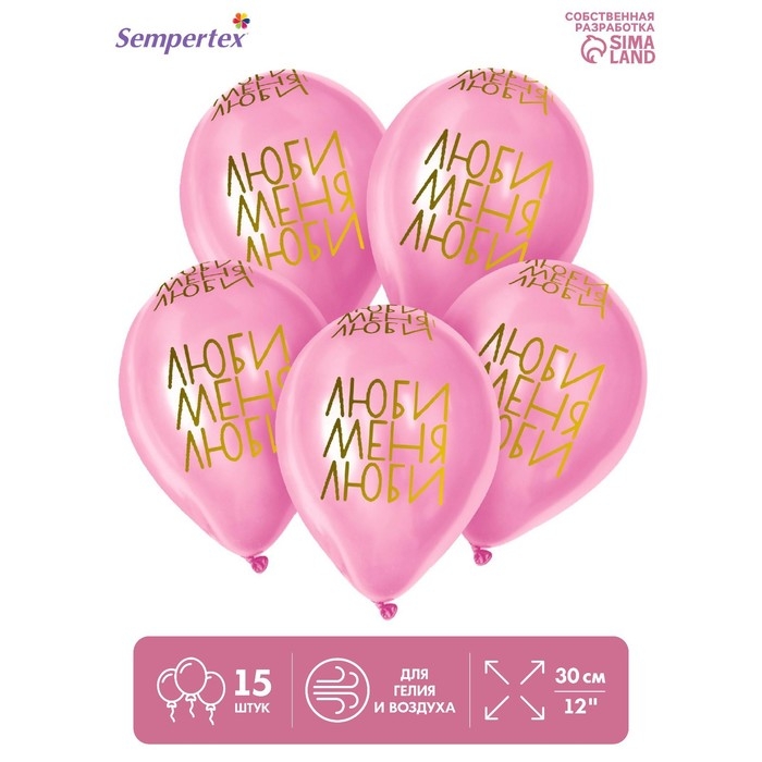 Воздушный шар латексный 12" «Люби меня, люби», пастель, цвет розовый, 15 шт.