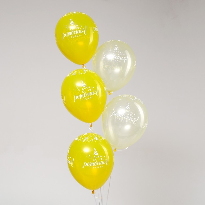 Воздушный шар латексный 12" «С Днём рождения», прозрачный, цвет жёлтый, 15 шт.
