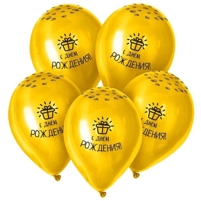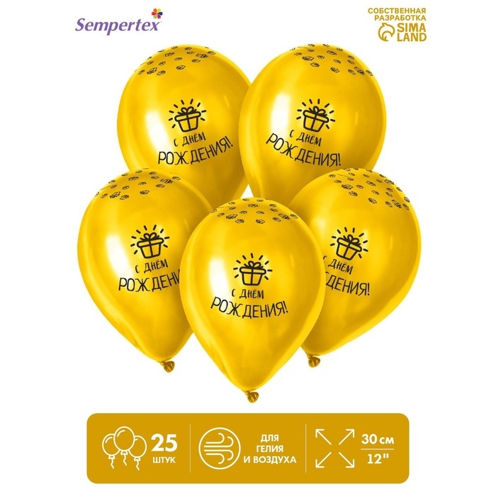 Воздушный шар латексный 12" «С Днём Рождения», пастель, цвет жёлтый, 25 шт.