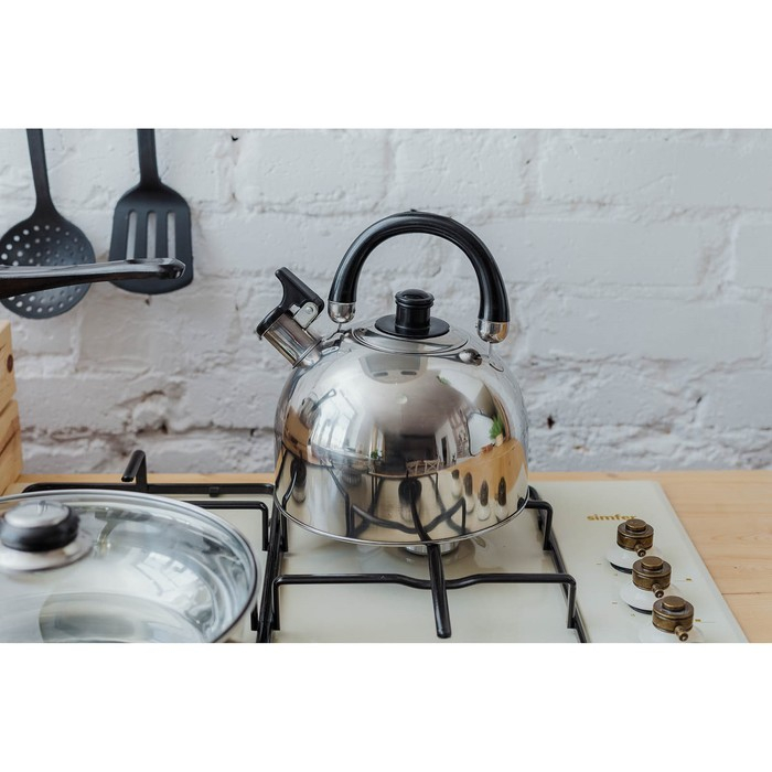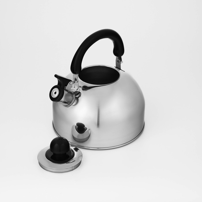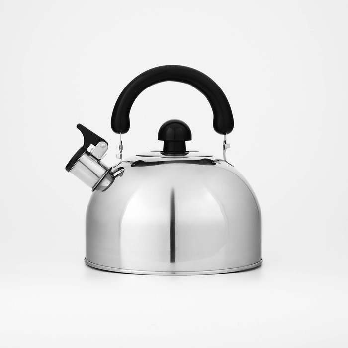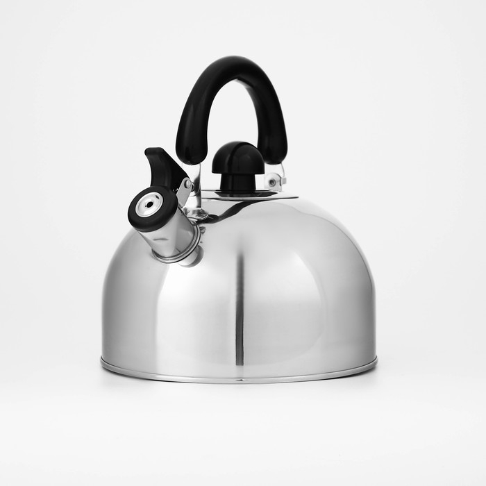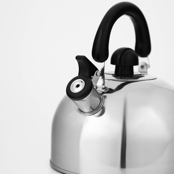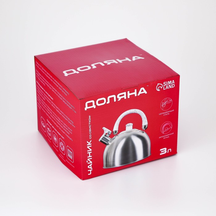 Чайник со свистком из нержавеющей стали Доляна «Чёрная ночь», 3 л, фиксированная ручка, цвет хромированный