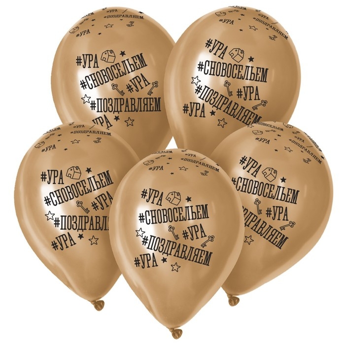 Воздушный шар латексный 12" «С Новосельем», золото хром, 15 шт.
