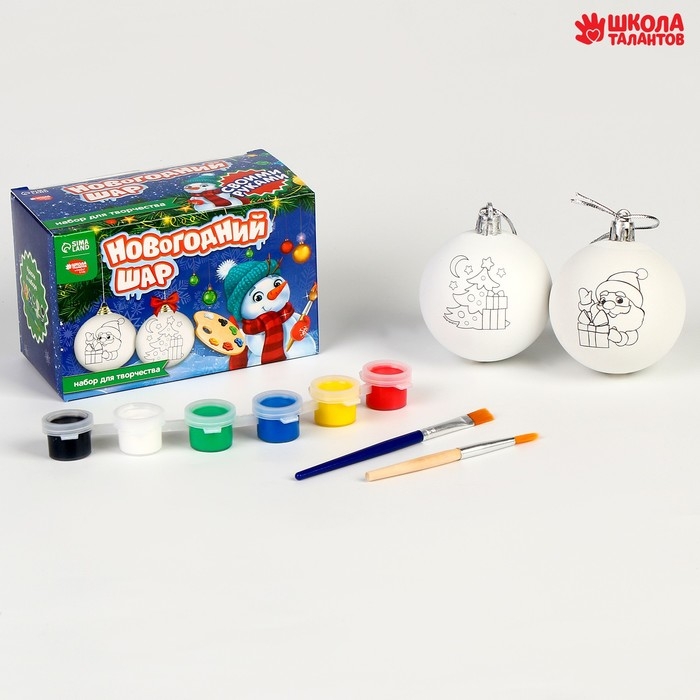 Ёлочные шары под раскраску на новый год «Зимний лес», краски, 2 шт, новогодний набор для творчества