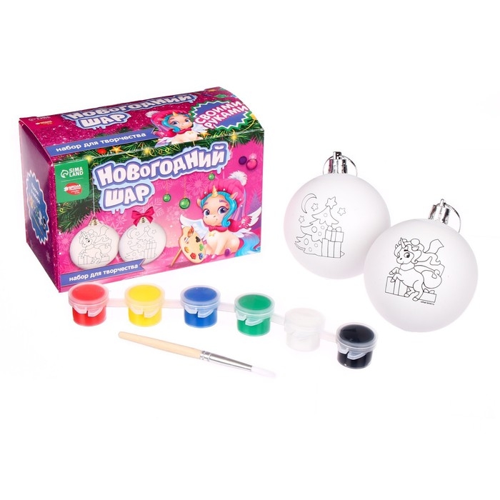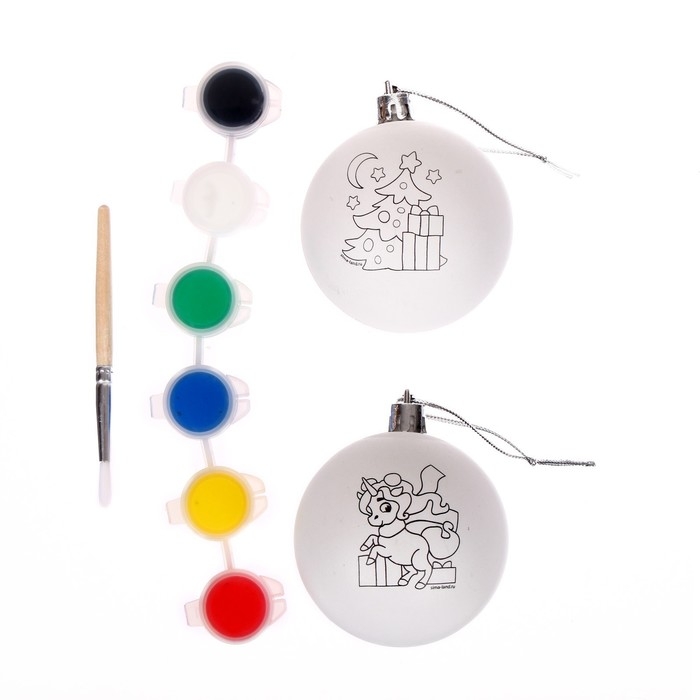 Ёлочные шары под раскраску на новый год «Чудеса под ёлочкой», краски, 2 шт, новогодний набор для творчества