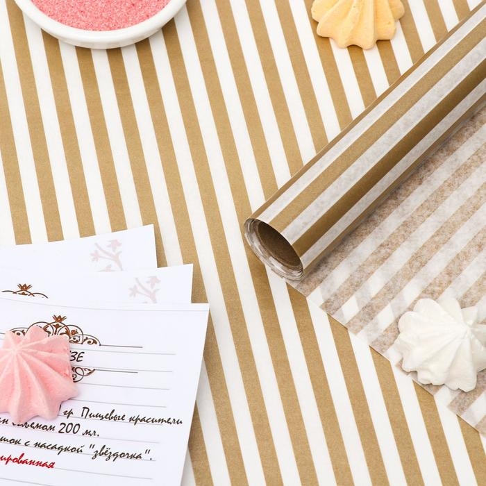Бумага силиконизированная «Полоски», золотые, для выпечки, 0,38 х 5 м