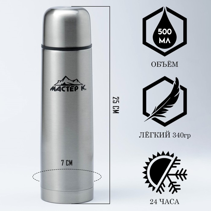 Термос, 500 мл, Топ "Мастер К Лучший", сохраняет тепло 8 ч, 7 х 26 см