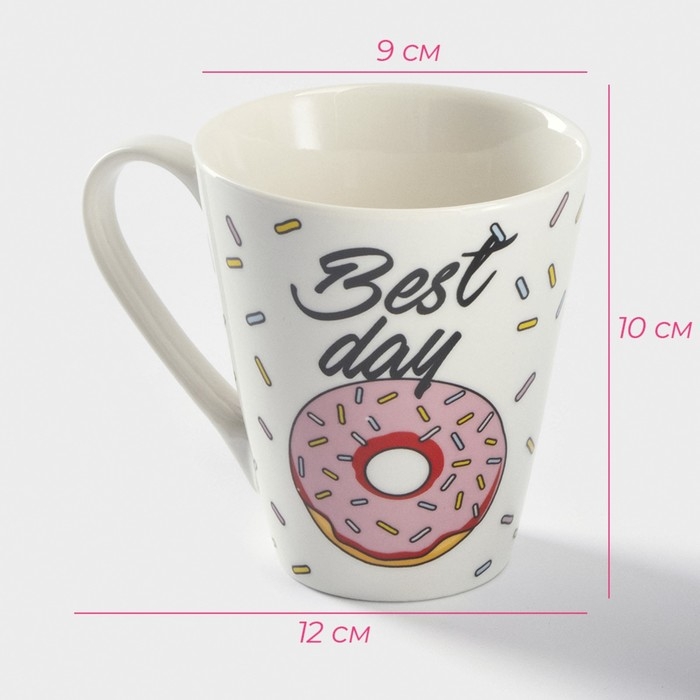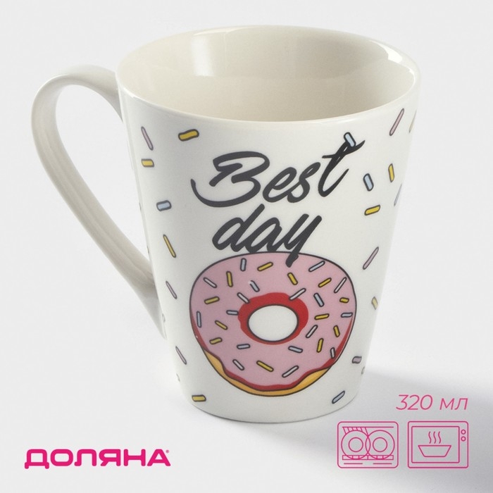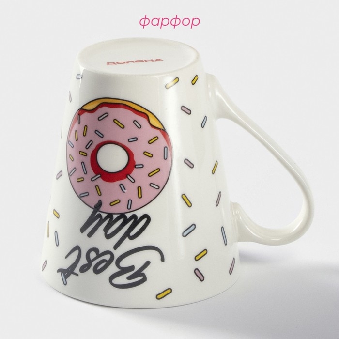 Кружка фарфоровая Доляна «Пончики», 320 мл, цвет белый