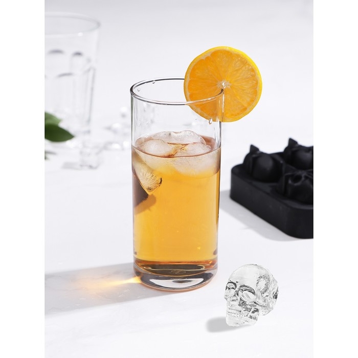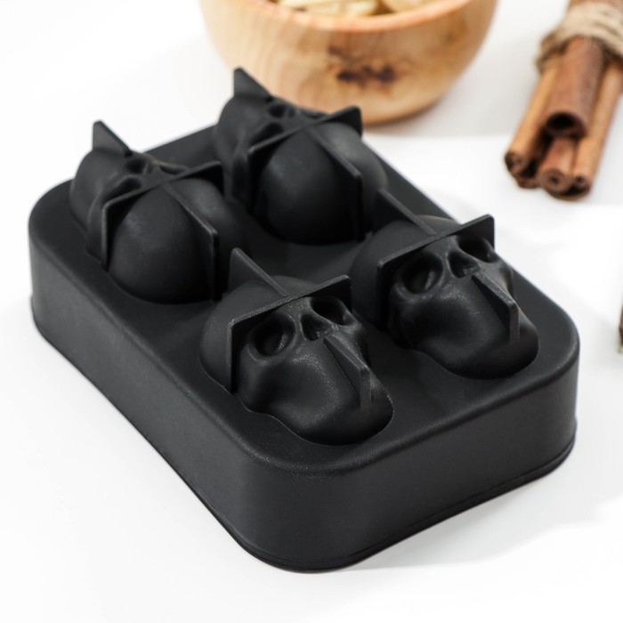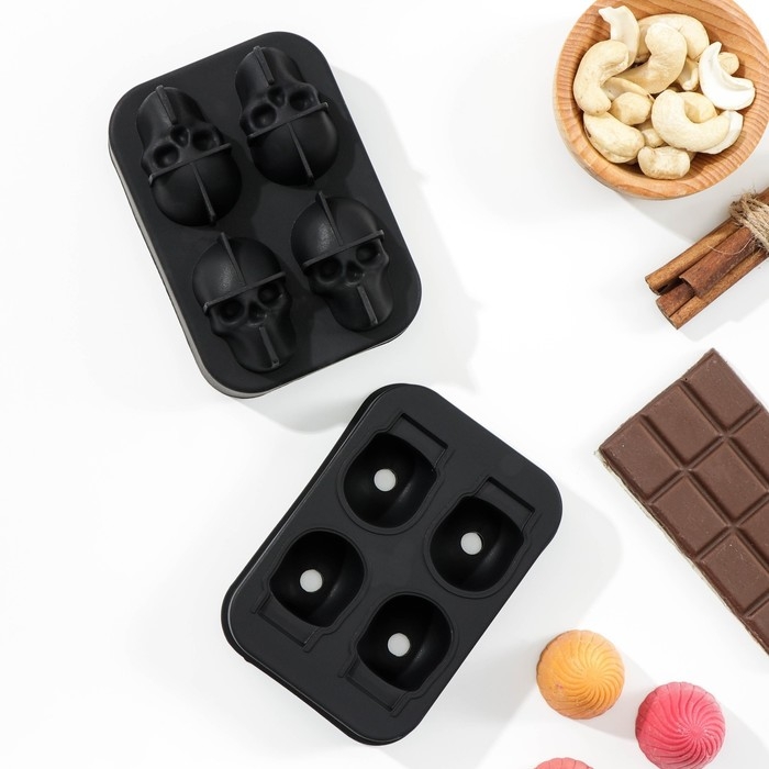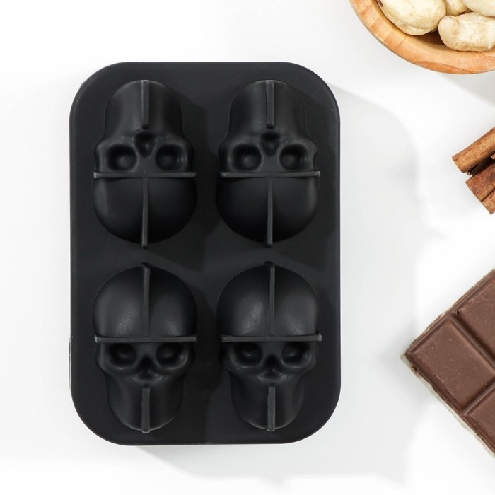 Форма для льда «Череп», силикон, 11×8×4,5 см, 4 ячейки (4,4×2,7 см), цвет чёрный
