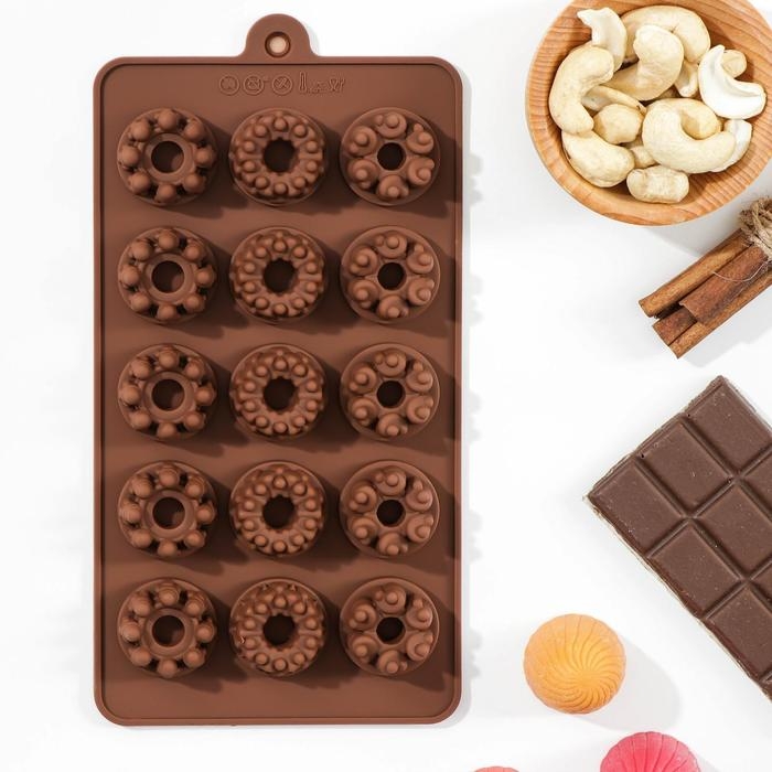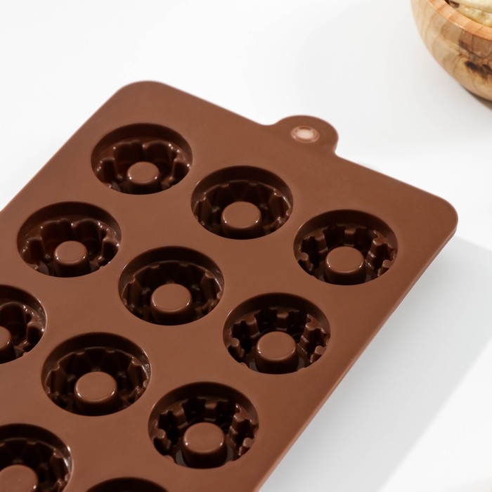 Форма для конфет и шоколада «Дольче», силикон, 20×11×1,8 см, 15 ячеек, цвет коричневый