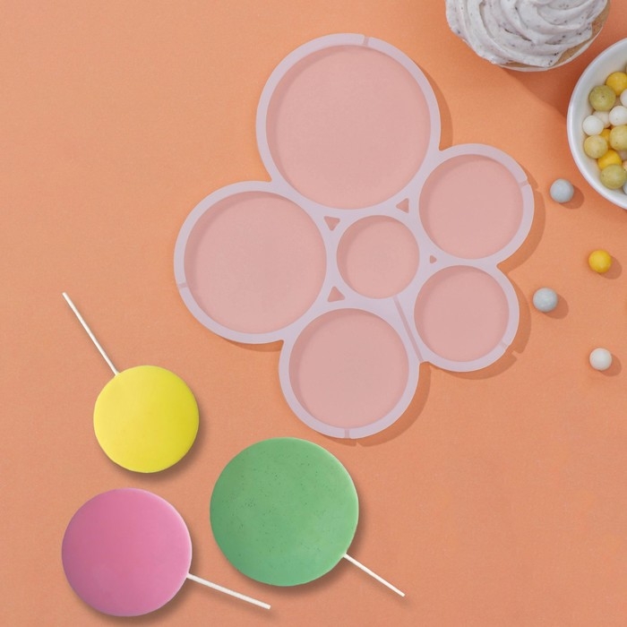 Форма для леденцов Доляна «Кругляши», силикон, 17×15,5×0,7 см, 6 ячеек, цвет белый
