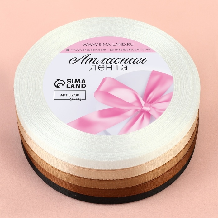 Набор атласных лент, 5 шт, размер лент: 6/10/20/40/50 мм × 23 ± 1 м, цвет бежевый
