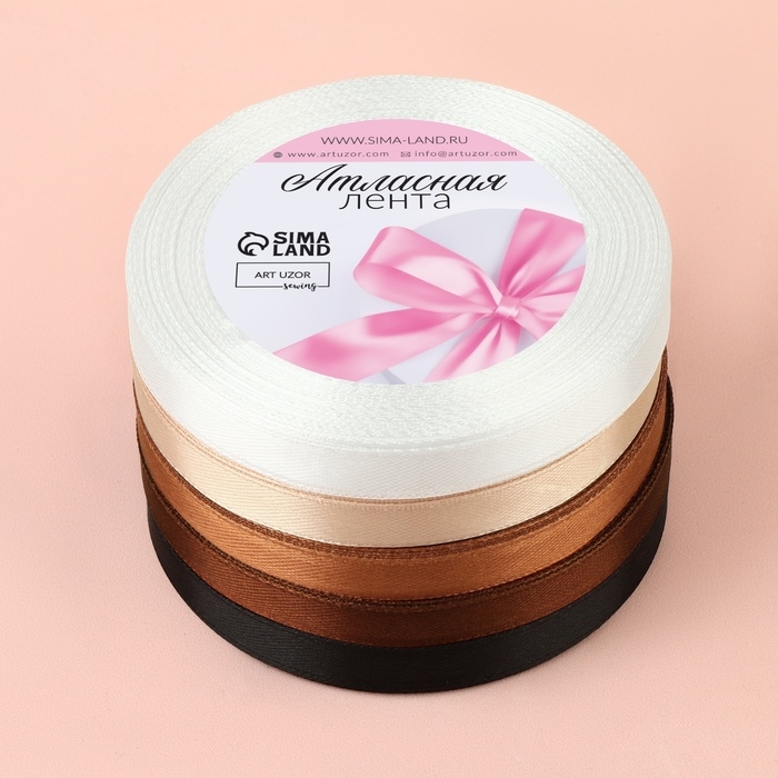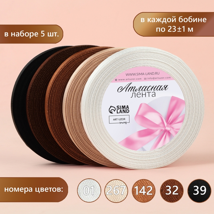 Набор атласных лент, 5 шт, размер 1 ленты: 10 мм × 23 ± 1 м, цвет коричневый спектр