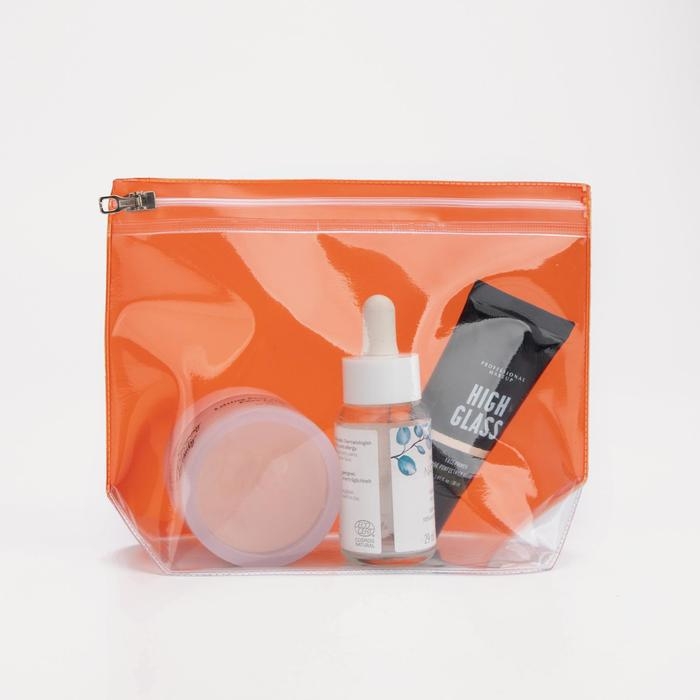Косметичка с застежкой зип-лок, цвет прозрачный/оранжевый