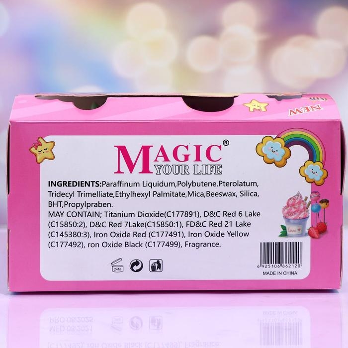 Блеск для губ в упаковке в виде маленького мороженого обладает нежной, тающей текстурой и насыщенным оттенком, который заметно освежает лицо и придаёт губам яркость и выразительность. Он ухаживает за нежной кожей губ, насыщая её необходимыми минералами и витаминами.