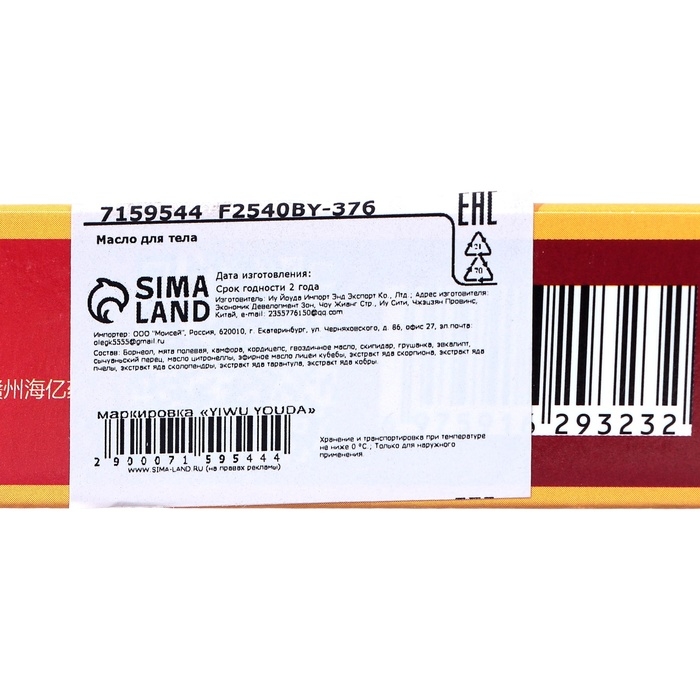Состав: борнеол, мята полевая, камфора, кордицепс, гвоздичное масло, скипидар, грушанка, эвкалипт, сычуаньский перец, масло цитронеллы, эфирное масло лицеи кубебы, экстракт яда скорпиона, экстракт яда пчелы, экстракт яда сколопендры, экстракт яда тарантула, экстракт яда кобры.