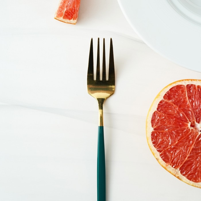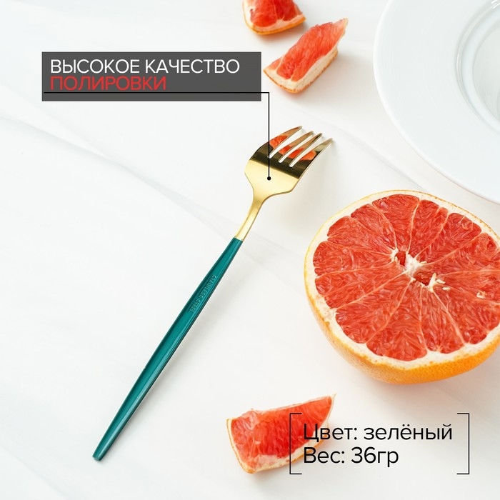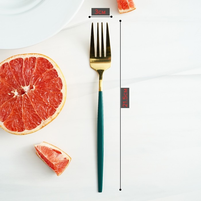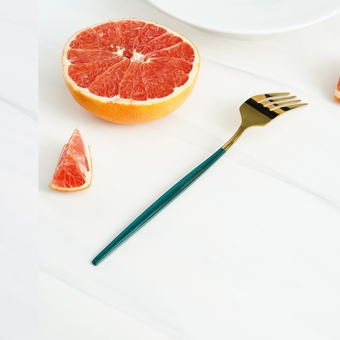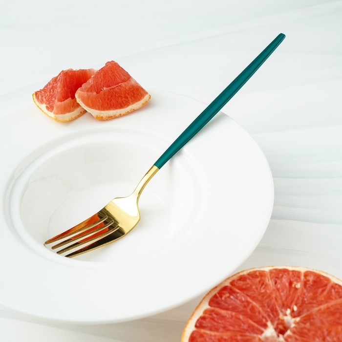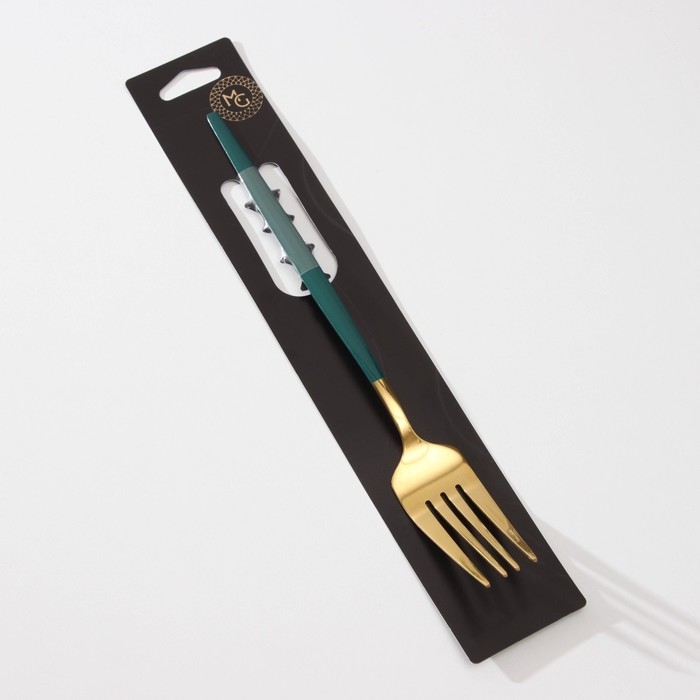 Вилка столовая из нержавеющей стали Magistro «Блинк», 21,5×3 см, зелёная ручка, цвет металла золотой