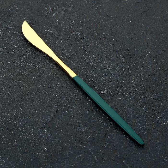 Нож столовый из нержавеющей стали Magistro «Блинк», длина 22 см, цвет золотой, зелёная ручка