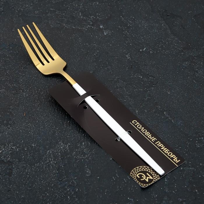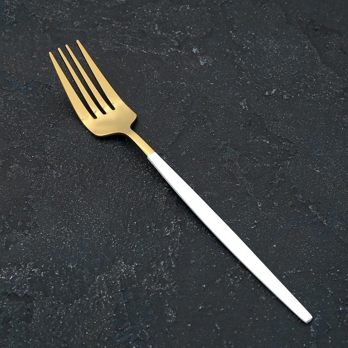 Вилка столовая из нержавеющей стали Magistro «Блинк», 21,5×3 см, белая ручка, цвет золотой