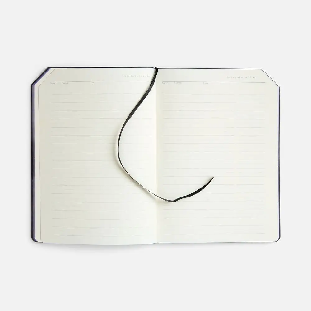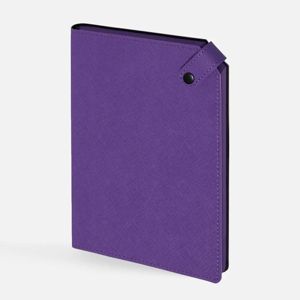 Ежедневник с гибкой обложкой, выполнен из материала Espresso, дополнен ляссе черного цвета и хлястиком на кнопке.