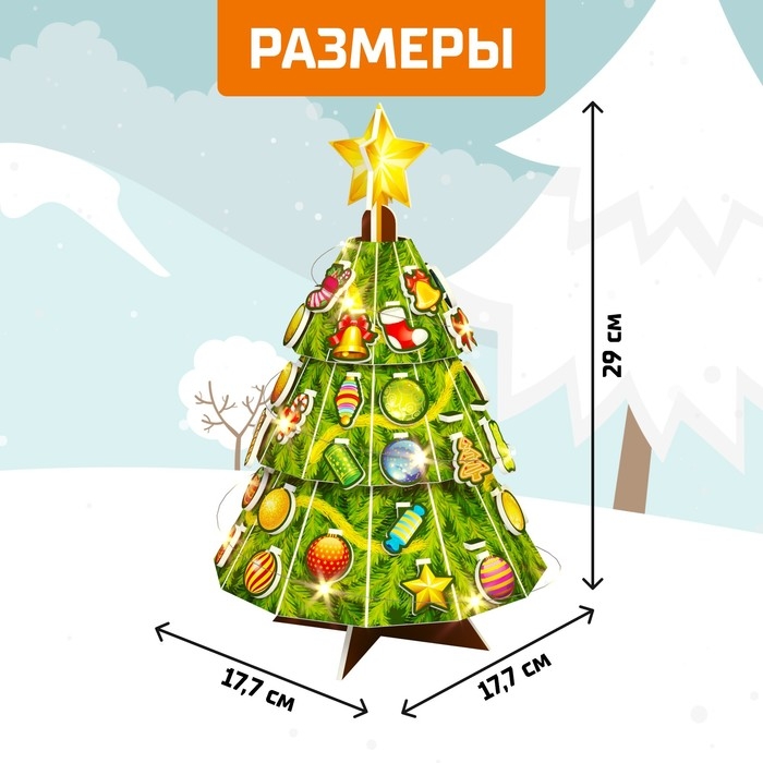 Конструктор 3D «Ёлочка», со светодиодной гирляндой, 67 деталей