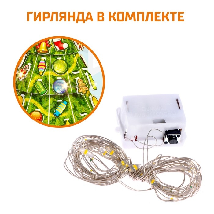 Помимо деталей конструктора, в комплекте идёт светодиодная гирлянда, ей можно украсить получившуюся фигурку!