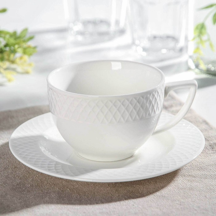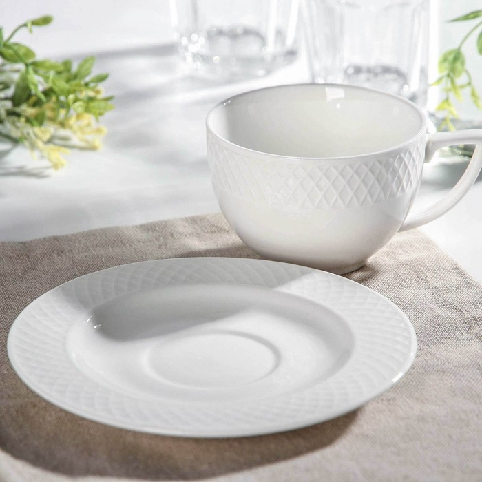 Чайная пара фарфоровая Magistro «Бланш», 2 предмета: чашка 250 мл, блюдце d=15,5 см, цвет белый