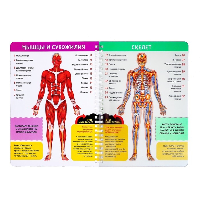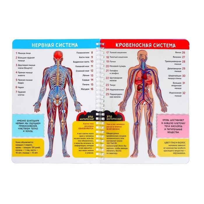 Книга с прозрачными страничками «Моё тело» — это увлекательный курс по изучению человеческого организма. В ней собрано большое количество удивительных фактов о строении тела. А ещё есть прозрачные странички. На каждой из них — изображение одной из систем организма. Если наложить их все друг на друга, получится подробный макет человеческого тема со всеми органами и системами.