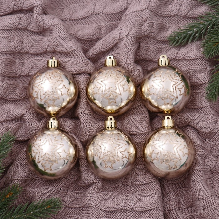 Набор шаров пластик d-6 см, 6 шт "Эмили звёзды" золото