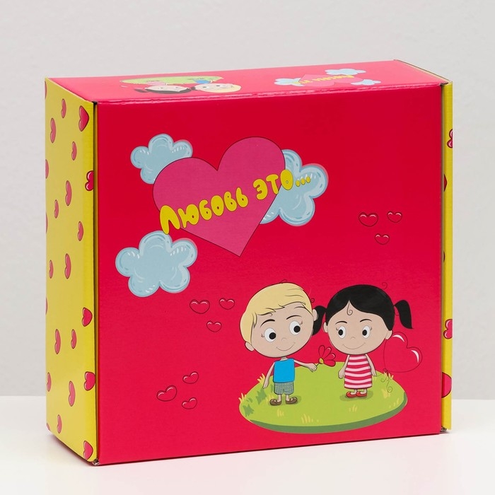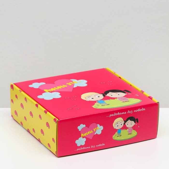 Коробка самосборная "Любовь это...", розовая, 23 х 23 х 8 см