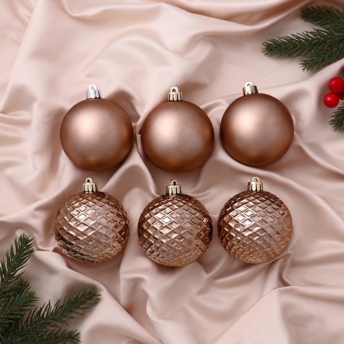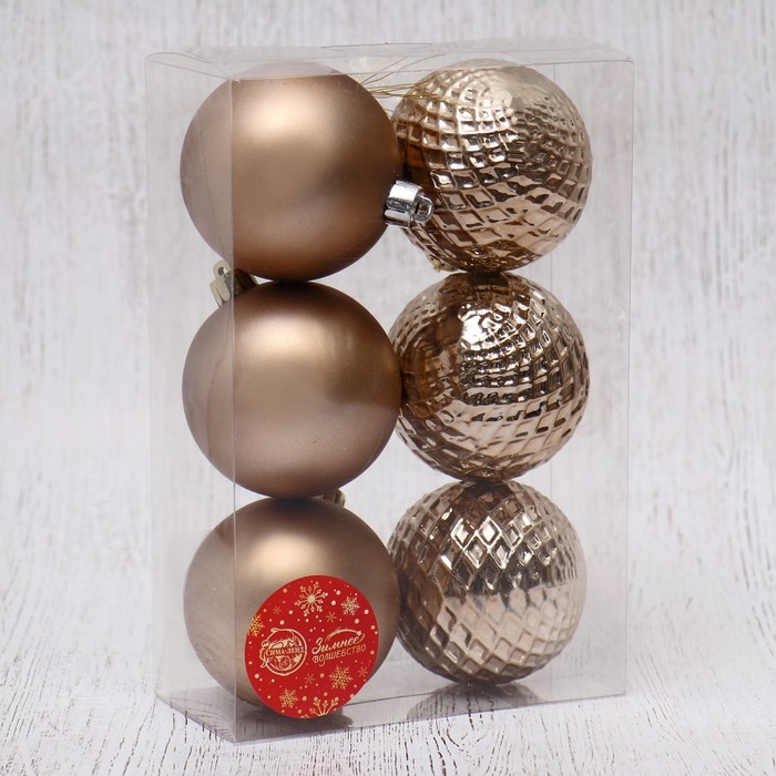 Набор шаров пластик d-7 см, 6 шт "Алета сеточка" коричневый