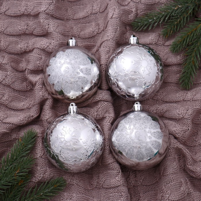 Набор шаров пластик d-8 см, 4 шт "Эмили капельки" серебро