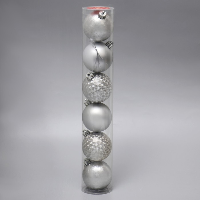 Набор шаров пластик d-6 см, 6 шт "Пилар" серебро
