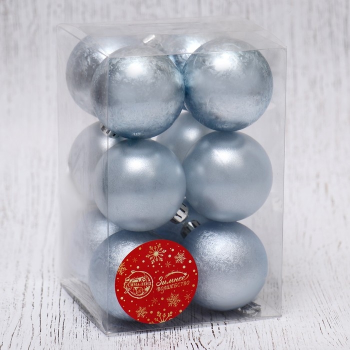 Набор шаров пластик d-5 см, 12 шт "Классика ассорти" голубой