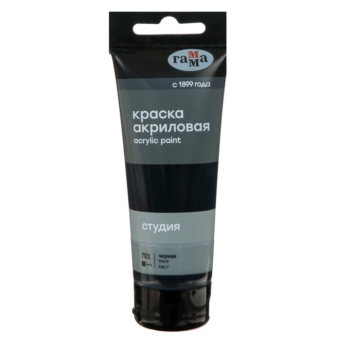 Краска акриловая художественная туба 75 мл, Гамма "Студия" №701 чёрная