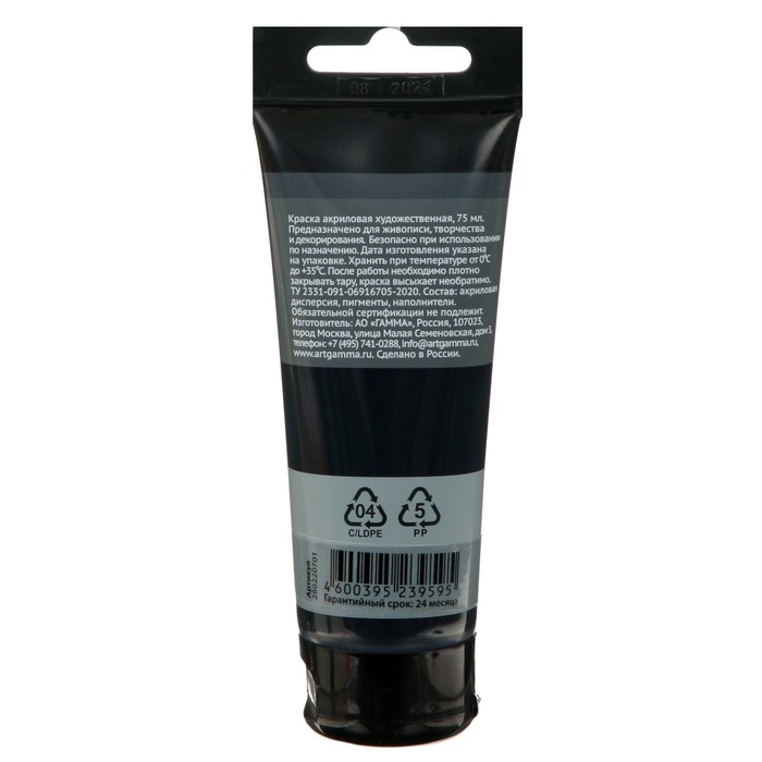 Новая акриловая краска ГАММА "Студия" предназначена для художественно-живописных и декоративно-прикладных работ. Цвет — чёрный. Объём пластиковой тубы — 75 мл.