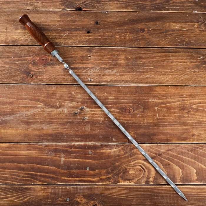 Шампур с деревянной ручкой, рабочая длина - 40 см, ширина - 8 мм, толщина - 2 мм с узором