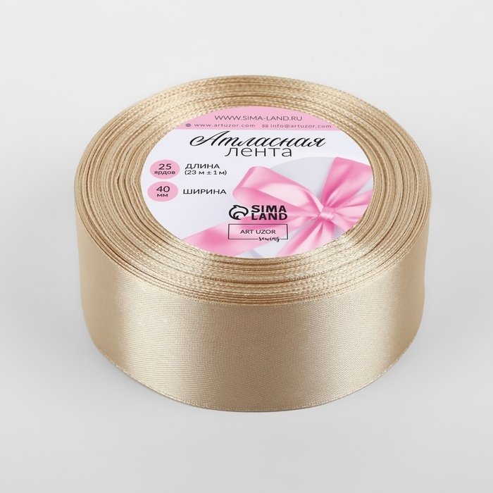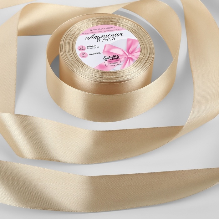 Лента атласная, 40 мм × 23 ± 1 м, цвет светло-бежевый №173